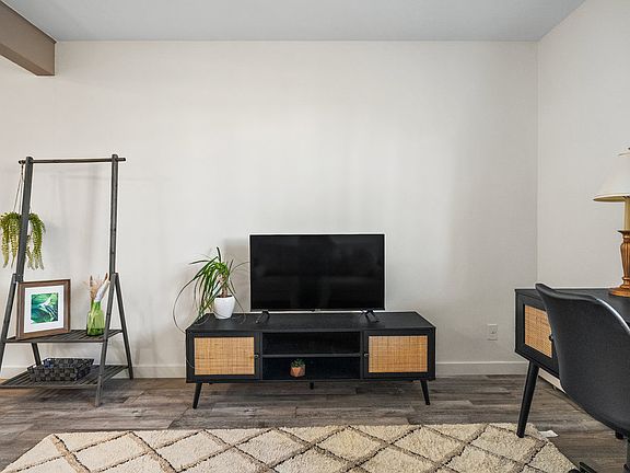 - Spacious living room with a sofa, flat-screen TV, and elegant decor