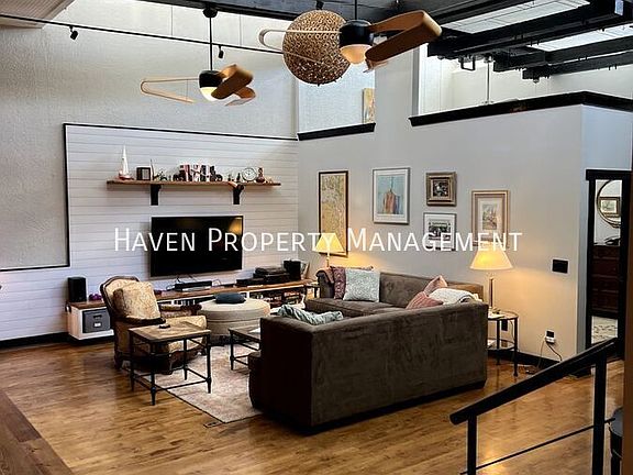 Private entranceModern lightingLoft spaceExposed brick wallsDual shower headsLuxurious spa-like showerGranite countertops