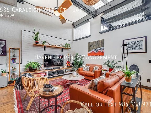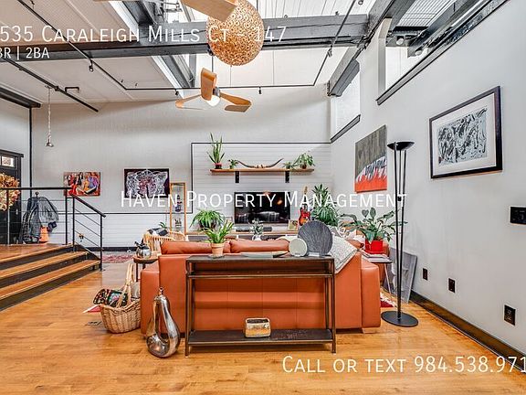 Step into a one-of-a-kind residence that perfectly balances historic charm with modern updates in the highly sought-after Caraleigh Mills community. This rare two-bedroom, two-bathroom condo features exposed brick walls, soaring ceilings with industrial beams, hardwood and tile flooring, and clerestory windows that flood the home with natural light.