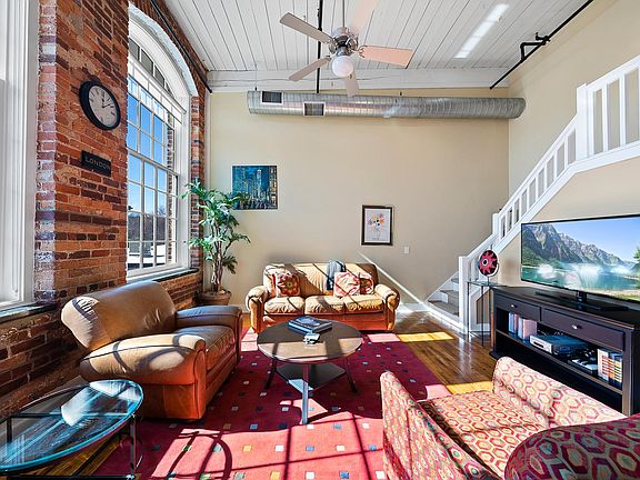 Soaring ceilingsWindows facing due southHuge walk-in closetExposed beamsGiant brick arched windows