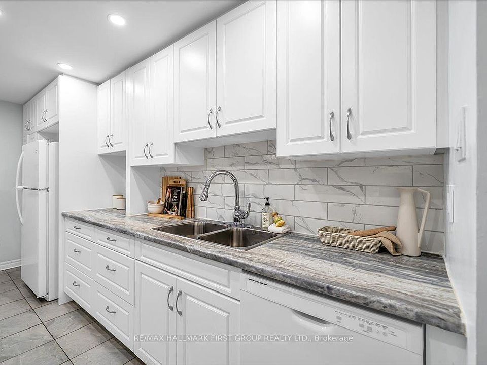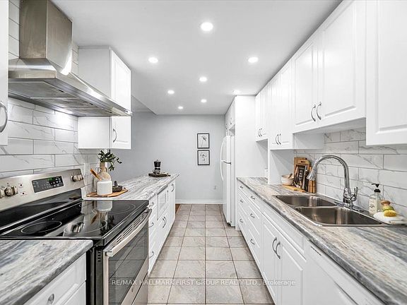 Welcome to this beautifully maintained 3-bedroom, 2-bathroom rarely found ground level condo- nestled in the heart of Pickering! This bright and spacious ground level condo features an open-concept living and dining area, ideal for both everyday living and entertaining. The modern, updated kitchen offers plenty of storage, sleek finishes, and a breakfast bar that overlooks the dining area. Natural light fills every room through large windows, creating a warm and welcoming atmosphere throughout. Carpet free home. Each bedroom offers generous space and ample closet storage, while the primary suite stands out with a double sliding closet and a 3-piece ensuite for added comfort and privacy. Step out from the living room to your private patio, overlooking greenspace on the west side of the building. Conveniently located walking distance to Pickering Town Centre, the rec centre & Library, GO Transit, parks, schools, and 2 minutes from major highways, this home combines modern updates with unbeatable convenience-perfect for families, first-time buyers, or those looking to downsize without compromise. Maintenance fees cover water, Rogers cable & highspeed internet, and common areas.