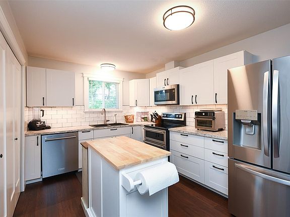 Sparkling clean and completely updated your new home is a ground level exterior entrance townhouse style condo. Gleaming wood floors, completely re designed kitchen with dishwasher, extra counter space, cupboards and a nice pantry. The entire complex has a new roof in 2024, In unit laundry, energy efficient baseboards with digital thermostats, control the lights from your phone, murphy bed can stay or be removed. Electronic smart toilet can also be replaced with a new conventional toilet if desired. This complex has been very quiet and located well off Dingwall yet conveniently located to everything! Nothing to do here but move in. No stairs and very close to your parking for those with mobility issues!
