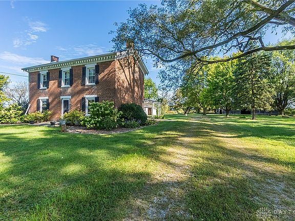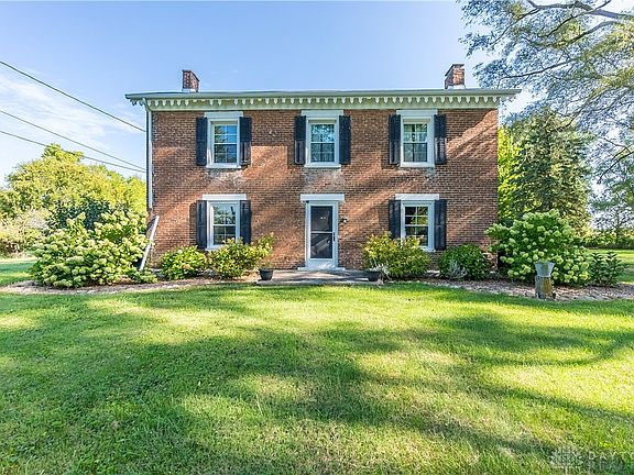One of a kind, 1800s farm property is ready for it's next chapter! This lovely brick 1 1/2 story home on 5 acres will delight you! The 2 bed/1.5 bath home has several desirable and significant updates. Chief among those are a lovely kitchen design (appliances convey) within the last year, as well as roof ten years ago; laundry room 6 years ago; windows 6-7 years ago; plumbing all new in 2014; new roof 2014; updated 200 amp electric panel 2014; NEW fuel oil fired boiler for radiant heat installed 2020; closed water filtration system 2023. The upstairs bedrooms were remodeled to include a new closet and new 1/2 bathroom in 2017. Septic pumped, inspected, new risers installed June 2024. The charm and attraction of this property does not stop with the home. There are 4 outbuildings including a newer barn near the fenced pasture that you can drive through, allowing plenty of storage for hay, feed etc. The large barn is believed to have been built near the 1850s and there is an inscription on one of the pieces of siding the present owners discovered (see photos for historical clues of the history of this property). It is perfect for your equipment storage, areas for animal pens, party area...let your imagination go! A winding path has been cut to a clearing for a fire ring and picnic or camping area in the back acreage. Lovely shade trees adorn the property as well as beautiful flowering landscape. Fireplaces are closed and decorative; never used by owners and not warranted. You are approximately 2 miles from the Rt 36/I-75 interchange and all the conveniences of the community, also minutes from Kiser Lake State Park and other Miami County recreation areas. This property is selling AS-IS but inspections may be done for Buyer information only.