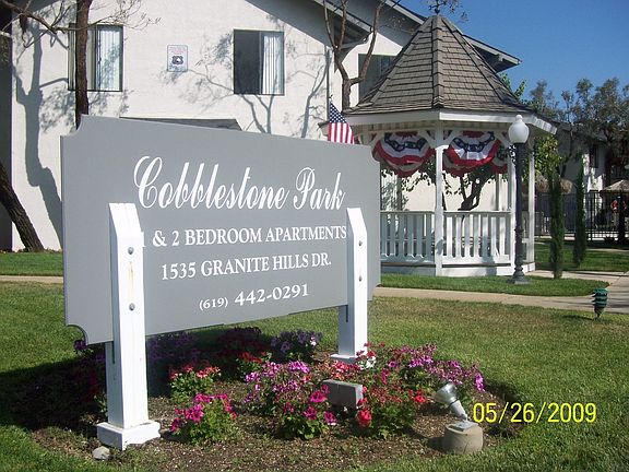 Beautiful park like grounds, pool, spa, built in gas barbeques, huge laundry room, desirable location & great management make Cobblestone Park one of El Cajon's most attractive communities.