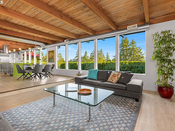Private oasis with views in Lake Oswego! Just two short blocks from New Seasons and a few minutes from parks, restaurants, and the new rec center, this updated mid-century modern gem offers both serenity and style. A four-foot-wide front door opens to a light-filled living space, where nine picture windows frame beautiful views of the hills to the north and Mt. St. Helens beyond. The open-concept main level highlights natural materials- an exposed wood ceiling, clean lines, and a striking nearly 17-foot waterfall island with 2 dishwashers. A glass door leads to a spacious deck overlooking the fully fenced, manicured backyard bordered by mature arborvitae. The setting is private, peaceful, and designed for both entertaining and relaxation. Two main-level bedrooms include en suite baths; one doubles as an office. The daylight basement offers a second living area with wet bar and backyard access. A large laundry room includes built-ins and a closet, while three separate storage areas ensure space for everything from garden tools to paddleboards. New roof, newer HVAC, updated baths, leased solar with low utilities, and more. Set on a lush 10,000 sq ft lot in a prime location, within 5 minutes of Lake Oswego Recreation and Aquatics Center and LO Public Golf Course (0.9 miles), Hallinan Elementary with playground (1.3 miles), Lakeridge High School (1.3 miles), Luscher Farm (1.5 miles), Hazelia Field with dog park (1.1 miles), George Rogers Park and the Willamette River (1.1 miles), Freepons Park (0.4 miles), and close to a hub of shops and cafes. With its refined updates and enduring design, this daylight ranch is both a functional retreat and a timeless architectural statement. *More photos are available.*