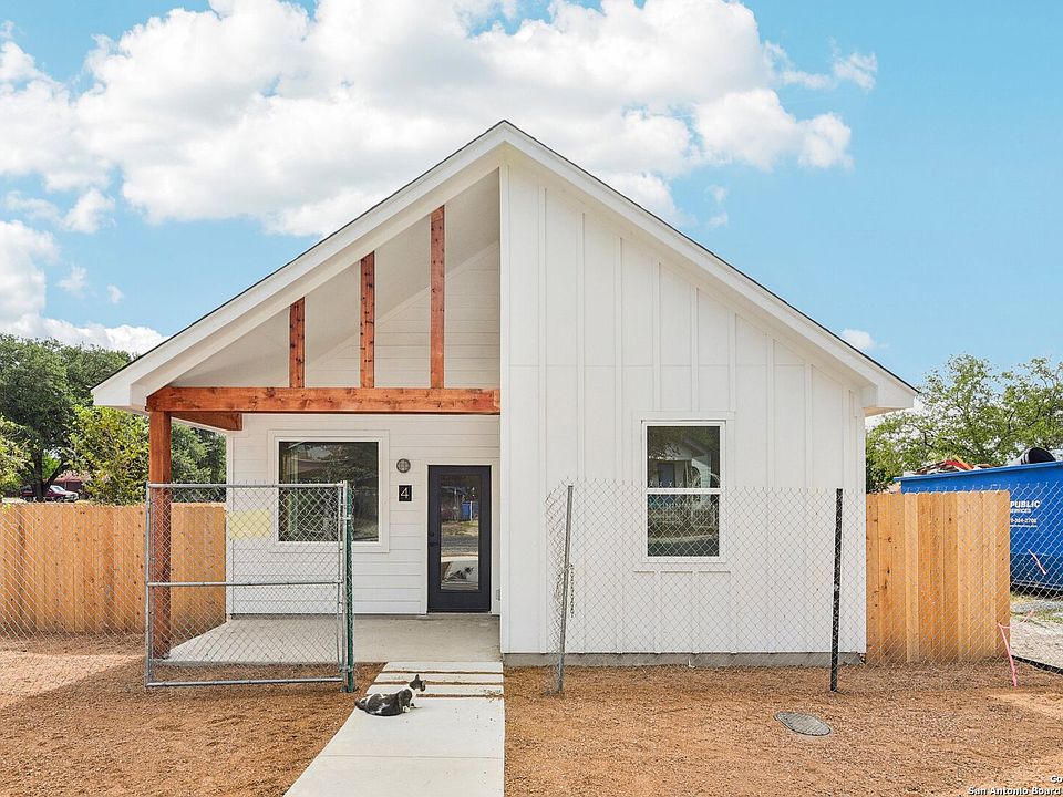 One Story! New construction in historic Hot Wells + great floor plan with vaulted ceilings in living area + Modern Architecture + 2 bedrooms and 2 full baths with very nice walk in closet in primary bedroom + quartz counters + great backyard, fully fenced (sod will be installed) + Excellent location with easy access to SE Military shops and restaurants (1.9 miles), Mission Reach portion of Riverwalk( 2 minute walk), historic Hot Wells springs (now open) + 10-year Strucsure structural and framing warranty, 1-year comprehensive warranty on workmanship. Mortgage incentive may apply from Chase bank. First of six houses that will be in this all new development!