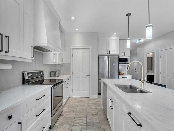 Calling all car and toy enthusiasts, hobbyists, and savvy buyers! This custom-built air-conditioned home offers just over 2,250 sq. ft. of upgraded living space with an illegal basement suite, solar panels, two garages, 5 bedrooms, 4 bathrooms and RV parking. This home is not only energy-efficient but also sufficient for the whole family and more. Step inside to discover a thoughtfully designed main floor that features a bedroom and full bathroom, ideal for guests, aging parents, or a convenient home office. The stunning kitchen is a true showstopper with white cabinetry, an elegant hood range, sleek stainless-steel appliances, and a spacious island with waterfall quartz countertops. The kitchen flows seamlessly into the dining area and bright living room, where a gas fireplace serves as the focal point, creating a warm, inviting space to gather. Upstairs, you'll find two additional bedrooms, a full bathroom with dual sinks so the kids don't have to share, a bonus room ideal for family living, and a generous primary suite with a beautifully finished en-suite bathroom and walk-in closet. Outside, the spacious backyard offers even more to love, featuring a detached 19' x 20'11' garage, RV or trampoline parking, and double-gate access, providing options for however you'd like to utilize the space. The attached garage is oversized 23' x 23'6' with an 8 door, providing ample room for your vehicles, tools, and toys. The lower level features a well-laid-out one-bedroom illegal suite with a separate entrance and 9' ceilings, an open-concept living and dining area, ample cabinetry, and a full bathroom, making it ideal for extended family or guests. This home truly has it all, with upgraded finishes, flexible living spaces, room to grow, and a garage and yard setup hard to find. You won't want to miss the opportunity to call this exceptional property yours. Conveniently located in the desirable, family-friendly neighborhood of Ravenswood, you are close to multiple schools, parks, pathways, and have quick access to shopping and the highway out of town.