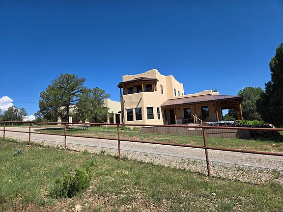 This 80 acre (+/-) secluded and unique estate is enveloped on 3 sides by the vast & breath-taking Lincoln National Forest, and features an enchanting 2,538 sq.ft. Spanish-style Hacienda. This luxury custom-built home is a perfect place to enjoy a stunning Southwestern sunrise cozied up next to the the Kiva-style fireplace under a vigas structured ceiling, encircled by mother nature at her best! Relax and unwind on the covered wrap-around veranda, that extends into a built-in deck and soak in a steamy jetted hot tub glimmering under star-filled skies.