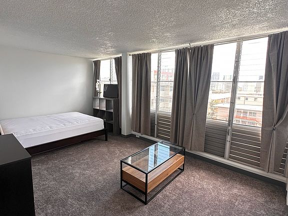 This studio includes sewer, water, WiFi, basic cable, laundry in unit, new carpet, minor renovations. Property comes with a pool, sauna, jacuzzi, small gym. Bbq area. One reserved stall, and on site mom and pop store. Walkable distance to Safeway. One bus ride to UH and Ala Moana. Sercured Key required for entry into the property.