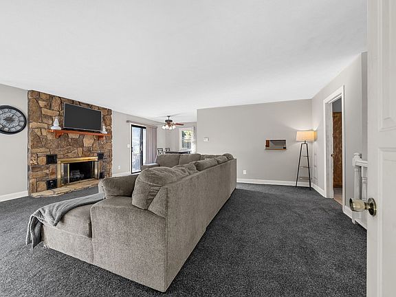 Located just minutes from beautiful Lake Barkley, this spacious home offers the perfect blend of comfort and convenience. Enjoy outdoor living with a covered carport and cozy evenings by the stunning stone fireplace inside. Interior features include a mix of carpet and laminate flooring, a spacious living area, and a bright, open layout. The full basement offers additional storage or potential living space. Step outside through the sliding glass door to enjoy the peaceful surroundings. Don’t miss this opportunity to live near the lake!