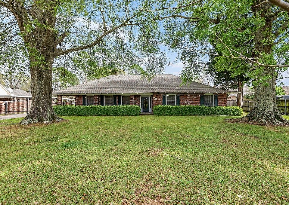 Back on market due to buyers' inability to obtain financing. This better than new 5 bedrooms, 4 bath BRICK home is painted in neutral colors. Gunite pool, workshop, and huge fenced in back yard. Lovely, Wrought iron electric gated driveway with plenty of parking. Beautiful mature oak trees and landscaping. Open floor plan with lots of living and storage space. The kitchen includes painted cabinets, slab granite countertops with travertine backsplash, under-mount stainless sink, double wall ovens, and large granite island with breakfast bar. Adjacent to the kitchen is a large 21x22 family room with walls of windows, French doors that open onto the patio, vaulted ceiling, and built-in bookcases. Off of the kitchen is a living room, which has a beamed ceiling and fireplace with brick surround and hearth. The spacious master bedroom features an en suite bath with granite, and an updated tile shower. Wide-plank wood flooring throughout living areas, porcelain tile in all wet areas, and carpet in bedrooms. The fenced backyard includes a covered patio, inground gunite swimming pool and lush mature landscaping. The workshop has electricity and water. No flood zone. Did not flood. Close to great restaurants and shopping, with convenient access to I-12. Call me today to schedule your private tour!