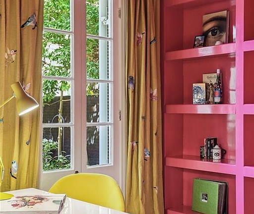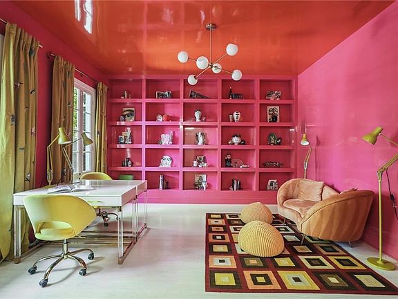 Ascend one of two custom rainbow staircases to the third floor, complete with a bar, full bathroom and incredible storage space. A custom stargazing mural enhances this dreamy retreat.