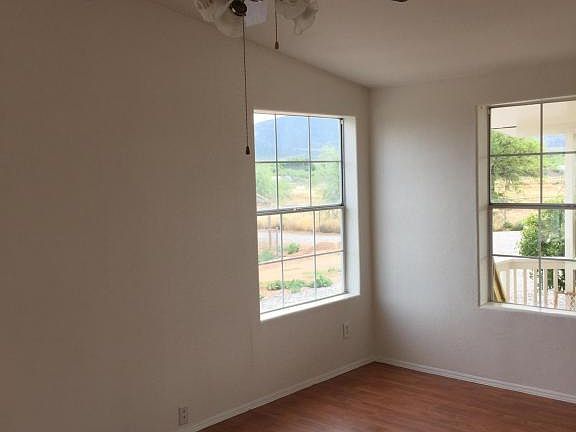 Rare grandfathered ditch irrigated acreage. Fenced area for horses, farm animals welcome, property chain link fenced, graveled driveway and front parking area. Enjoy the views while sitting on the full length covered front porch. New wood laminate flooring, except for baths and laundry room, vaulted ceilings, skylights, large picture windows for great lighting. Split bedroom floor plan with bonus nursery/library/office off the MB, walk-in closet. Separate tub and shower, double sinks in the Master Bath, full hall bath. Near the Verde River, but out of the flood plain. All electric home, refrigeration, washer/dryer remain in the home, separate laundry room. Country living at it's best, come one out and see why you would want to call this place ''home''