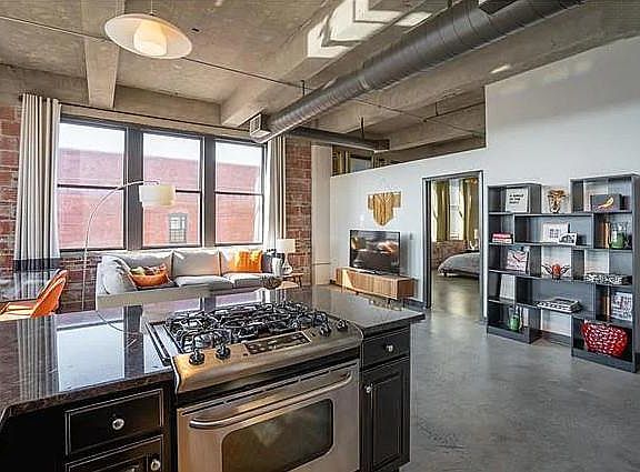 FURNISHED, GATED PARKING SPACE INCLUDED. Rare 6th floor Campbell Lofts unit with balcony, centrally located in the heart of downtown Kansas City's Crossroads District, just blocks from the Power & Light District, T-Mobile Center and Kauffman Performing Arts Center. Upgraded, spacious one bedroom with fabulous corner views. Exceptional loft space with exposed brick, 12 ft ceilings, large private bedroom, south and east facing windows. FULLY FURNISHED with king size bed and additional Murphy Bed in living area. In-unit washer/dryer, Wifi, storage unit, gym access, and one gated PARKING SPACE INCLUDED. Water, gas, trash, wifi included with rent. Tenant pays electric.