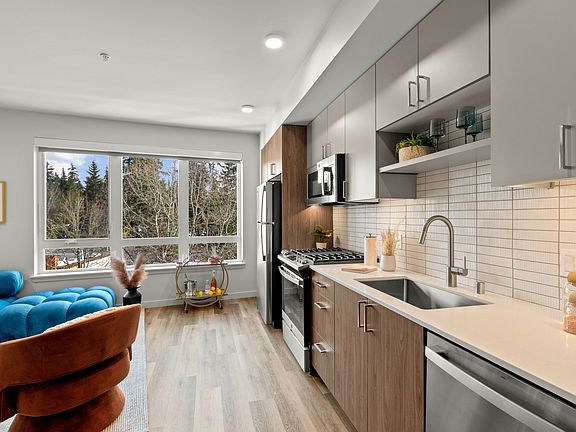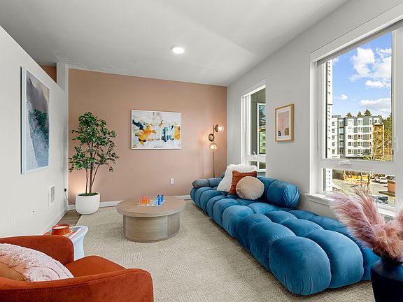 - Exterior features: 10-minute stroll to Microsoft World Headquarters, Bicycle storage, Boutique-hotel inspired design throughout the community, Choice of color schemes: wood-inspired or modern two-toned cabinetry, Conference Room, Courtyard, Electric vehicle charging stations, Elevated 9' Ceilings, Exterior Type: Conventional, Flexible payment schedules available on approved credit, powered by Flex, Flooring: Wood, Get creative in the DIY project room with music system, Ground-level plaza conveniently connected to retail, High-End Appliances, High-speed Internet Ready, Hotel-inspired lobby with elevated ceilings and coffee bar, Moveable kitchen islands with storage or pull-up bar seating*, On-time rental payment reporting through RentPlus, Package Receiving, Parking, PetsAllowed, Rooftop Deck, Separate dining area and breakfast nooks*, Serene bathrooms with quartz countertops and backlit mirrors, Shaker style cabinets with sleek silver hardware, Single basin kitchen sink with pull-down faucet, Sliding glass partition walls*, Smart Home, Smart home technology throughout the community, Soaking tubs and rainfall shower heads, Stylish tile backsplash with quartz countertops, Theater, View Type: View, Within minutes from Bellevue via bus as well as the brand-new light rail lines expected in 2023