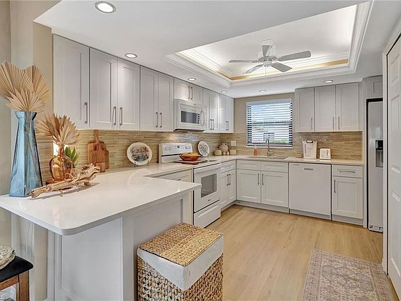 Gulf Access Waterfront Condo in Yachtsman Cove – North Fort Myers. Step into a beautifully updated end-unit condominium that blends modern elegance with the ultimate Southwest Florida lifestyle. Located in the Yachtsman Cove community, this residence offers serene views of a peaceful creek and convenient access to the Gulf. For boating enthusiasts, dock space is available on a first-come, first-served basis, accommodating vessels up to 26 feet. Inside, you’ll find a thoughtfully remodeled interior featuring wood plank tile flooring, custom cabinetry, solid surface countertops, glass tile backsplash, and a luxurious marble tile shower. Impact windows provide peace of mind, while recent upgrades include a water heater installed in 2024 and an AC system installed in 2020. The spacious layout offers two bedrooms, two baths, and approximately 1,190 square feet of living space. Enjoy the outdoors from your 12-foot screened lanai with private storage, or take advantage of the covered carport and additional exterior storage. The community pool, complete with a newly resurfaced sundeck, is just steps away for easy relaxation. Yachtsman Cove offers low monthly fees that cover water, sewer, master insurance including flood, lawn care, irrigation, trash, and recreational facilities. Pet-friendly for one cat or dog up to 25 pounds, and with monthly rentals permitted, this property is an excellent choice for seasonal income potential. Short-term rentals in season can generate approximately $2,500 to $3,000 per month. Located in North Fort Myers, you’ll enjoy quick access to Southwest Florida International Airport (about 30 minutes) and Punta Gorda Airport (about 31 minutes). From your doorstep, explore the river, beaches, islands, and waterways that make this region a boater’s paradise. This is your opportunity to own a slice of waterfront paradise in a welcoming community. Schedule your private showing today and experience the best of Florida living.
