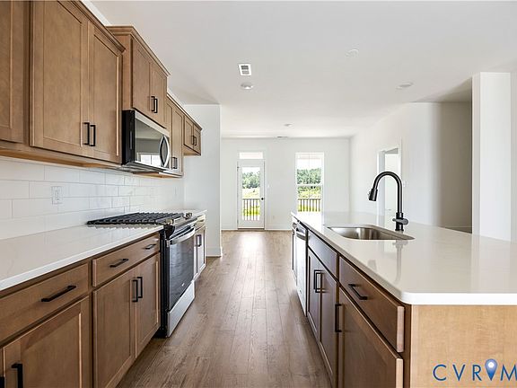 Welcome to the Richmond by Main Street Homes! MOVE-IN READY 3-story townhome is thoughtfully designed for how you live today blending timeless style, energy efficiency, and modern comfort in the heart of Chesterfield County. Nestled in the vibrant Oasis community in Midlothian, this spacious townhome offers 3 bedrooms, 3.5 bathrooms, and standout features, making everyday living feel effortless. Charming front porches on the first and second floors welcome you home. Oak stairs lead from the first to the second level, setting the tone for the home's warm and elevated design. The first floor includes a private bedroom with durable laminate flooring and a full bath-ideal for guests or a flexible home office. Upstairs, the second level shines with an open-concept layout perfect for hosting or relaxing. You'll love Sunday brunches in the gourmet kitchen, complete with quartz countertops, ceramic tile backsplash, stainless steel appliances, gas cooktop, and a large island. The main living floor has a sunlit great room, spacious dining area, and powder room. The third level features a luxurious primary bedroom with two walk-in closets, a spa-like ensuite with Euro shower, dual vanities, and linen storage. A guest bedroom with a walk-in closet, full bath, and convenient laundry room round out the top floor. Other highlights include a rear-entry 2-car garage, a relaxing rear deck, a tankless water heater, and energy-efficient systems throughout. Conveniently located near top...