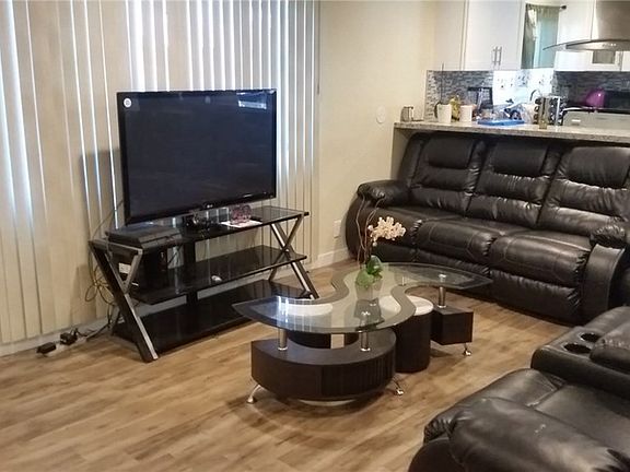 Turn key remodeled home at the end of the cul-de-sac 2 car garage plus more parking on the side of the house can park many cars!! New Quartz counter tops very nice backsplash. 3 bedrooms 1.5 baths fully remodeled very nice floors, new painting inside and out, laminated floors , new roof, new windows, nice private back yard. Garage has a extra bedroom with new carpet !!