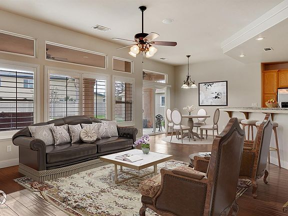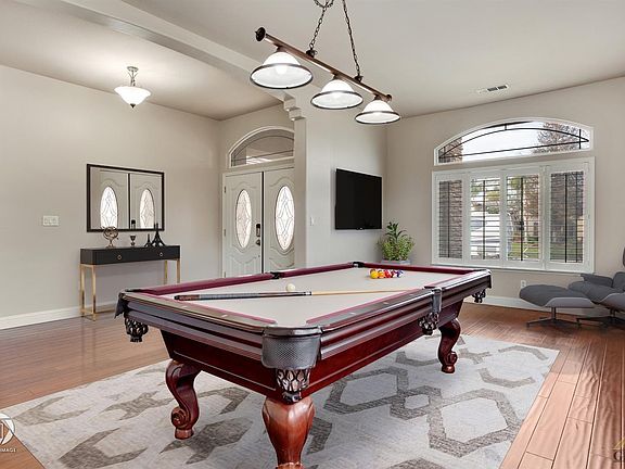 Silver Oak Ranch Classic built by Essex Homes! Immaculately maintained and situated on an Estate sized lot of over 13,500 sq. ft. tucked perfectly into the Cul-de-sac. This lovely Split-Wing home has 4 bedrooms, 3 baths, oversized 3 car garage and large RV parking. Kitchen opens to great room & features granite counters, center island, tile floor, & large pantry. Plantation shutters, fresh paint throughout, surround sound wiring, alarm system, and central vac. Formal LR/DR or Game Room with beautiful pool table and game table lighting. Master retreat has extended sitting area, spacious bathroom & walk in closet. Large oasis-like backyard is an entertainer's dream. Large covered patio, Salt Water pool w/cascading water features, iron fencing and additional building for extra storage. Great curb appeal with mature landscaping and lovely front courtyard. Solar System, makes for low utility costs. Alarm. This home literally has it all!