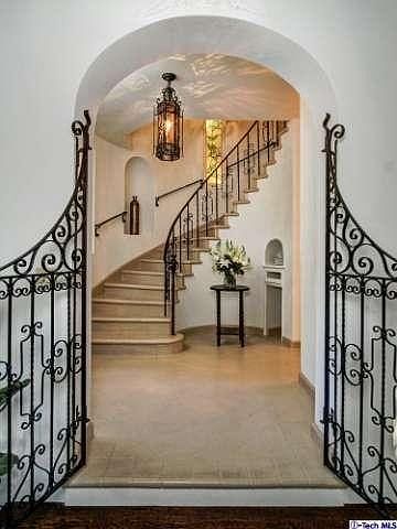Back On Market! Welcome to Casa Bua! This Mediterranean estate is nestled in the Brand Park area of NW Glendale, near Kenneth Village & minutes from Disney & Warner Bros. For over 20 years, this celebrity home has been the heart of memorable Entertainment Industry gatherings. Enter the gated courtyard to a dramatic entry, with winding staircase, glamorous wrought iron work and arched niches. Step down into the ballroom-like living room, with grand windows, elegant fireplace, stunning views, and 20 foot hand stenciled beamed barrel ceilings where the Buas created award winning musicals. Period details divide the living room and dining room with french doors that lead to a large deck overlooking the pool and gardens, a bit of Tuscany. The newly remodeled kitchen offers plenty of space to entertain and prepare for those special gatherings. There are 3 bedrooms upstairs including the master suite & a 4th downstairs, all with amazing views, the 3 room lower level stretches the imagination and allows for a studio like 5th bedroom with separate entrance. This home has too much to mention, come see for yourself and find your Love of Life.