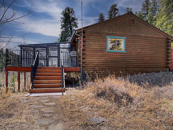 This sweet mountain cabin offers the perfect blend of privacy and breathtaking vistas. The authentic D-log structure features an upgraded metal roof and offers convenient access with paved roads leading directly to the 2-car detached garage. The thoughtfully designed floor plan includes bedrooms on each side of the cabin, both with their own ensuite bathrooms for maximum privacy and comfort. Stay powered even in the worst of snowstorms with the well maintained, whole home 16KW, natural gas generator. Wildlife enthusiasts will appreciate this true moose-country setting, where deer, elk, and fox are frequent visitors, along with the occasional bighorn. This mountain oasis is available at an affordable price point, allowing a serene escape from everyday life. Please note: This property is being sold strictly as-is. Seller does not have the will or ability to address any inspection issues. The list price has been adjusted by $50,000, based on recent comparable sales, to account for deck work needed. Septic is designed for 2 bedrooms or 4 people.