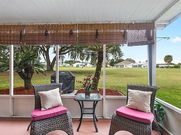 Welcome home to this beautifully maintained El Paso model located directly on the 15th tee of the Orange Blossom Hills Golf Course — offering exceptional privacy, serene golf views, and mature oak trees as your backdrop. From the moment you arrive, you’ll appreciate the screened front entry, decorative driveway, and the charm that sets this home apart. Step inside to an inviting, pristine, open floor plan with vaulted ceilings, laminate flooring, and neutral carpet in the bedrooms. The living and dining areas are bright and airy with decorative fans, skylights for natural light, and updated lighting fixtures throughout. The kitchen was designed with efficiency in mind — offering refreshed cabinetry, plenty of storage, and a layout that keeps you part of the conversation while entertaining. The primary suite is a true retreat, featuring a decorative fan, walk-in closet, and en-suite bath with updated fixtures and finishes. The guest bedroom and bath are spacious and private — perfect for overnight visitors. Step outside to your expanded enclosed lanai — ideal for relaxing with a morning coffee or watching golfers tee off in the distance. A grilling pad and outdoor sitting area make it easy to enjoy Florida living year-round. Practical updates bring peace of mind, including: * ROOF 2024 * Newer double-pane windows * Water heater (2024) * HVAC (2016) * Garage door & opener * Expanded driveway and added washer/dryer area off the kitchen Constructed with a 4-foot deep concrete crawl space to protect against moisture and foundation concerns, this home has been thoughtfully maintained. **NO BOND** and low maintenance assessment make ownership even more appealing. About The Village of Country Club Hills: Located on one of the most scenic elevations in The Villages, Country Club Hills is home to the Orange Blossom Hills Country Club — a beloved landmark featuring 18 holes of championship golf, a Hilltop executive course, and a restaurant and pool for residents to enjoy. Rolling hills, mature trees, and sweeping views create a peaceful setting just minutes from Spanish Springs Town Square. Whether relaxing at the Hilltop pool or meeting friends for a bite at the country club, you’ll love the welcoming charm and established character of this community.