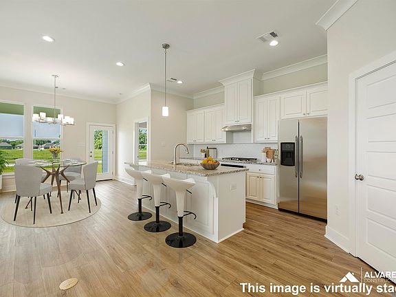 Estimated completion: complete and ready to move in Welcome to the newest addition to Zachary, LA, Cheval Trails. The Alvarez Construction exclusive community features homes ranging from 1,547 sq ft to 1,968 sq ft, perfect for any family. With these homes come many modern amenities, including a doorbell camera for added security. All homes come with a WiFi-enabled SmartHome management hub that includes 3 months of free monitoring. All homes also have a wireless smoke/heat combination detector and a WiFi-enabled thermostat with moisture controls and an advanced filtration system. With all of these smart home features, this community is sure to be the perfect place to call home. Come take a tour and see for yourself why our community is the perfect place for you and your family. The Arlington is a single-story, 1,968 sq ft, 5 bedroom 2.5 bathroom plan that features an open living area with 10’ ceilings. The kitchen features a large island and is open to the living room and dining room. The large owner’s suite has windows to the backyard, an ensuite attached bath with double vanities, a walk-in shower, a separate garden tub, WC, and a spacious walk-in closet. Bedrooms 3, 4, and 5 are located at the front of the home while bedroom 2 is located off of the dining room. There is a utility room located right by the 2-car garage. Included upgrades: electrical floor outlet in living room, 3cm granite countertops throughout, hardwood flooring in all common areas, bedrooms and closets, kitchen trash can pull out drawer, custom tile shower in the owner's bathroom, gourmet kitchen upgrade, lighting upgrade level 1 & kitchen backsplash level 3