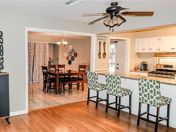 Charming 3 bed, 2 bath home has a great open floor plan w/ 2 living areas. Dining room is generous in size and next to kitchen for easy entertaining. Kitchen offers eat-in bar, gas cooktop and oven, disposal, dishwasher, pantry, and lots of cabinets. Kitchen overlooks big living room. 2nd living area has wood burning fireplace. All 3 bedrooms are ample sized and have hardwood flooring. Enjoy the backyard with privacy fence and patio! AC/heating unit less than three years old.