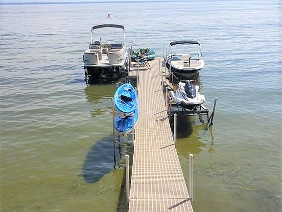 Enjoy the Lake House! Meticulously updated & maintained throughout! Lake side entertainment deck!!! Newer upscale dock, for boats, fishing & swimming...2 roomy bedrooms and loft bonus area, shiny hardwood floors, tile bath, newly paved driveway, large garage w/lots of storage!!Just a couple miles to enjoy public parks; boat launch; snowmobile trails; hunting on state land plus more to do just miles away!! No flooding here or flood insurance required. Hard to find waterfront ranch with so many extras...turn key-all furniture & dock stay-just bring your suitcase & fun times ahead!!!