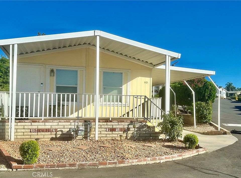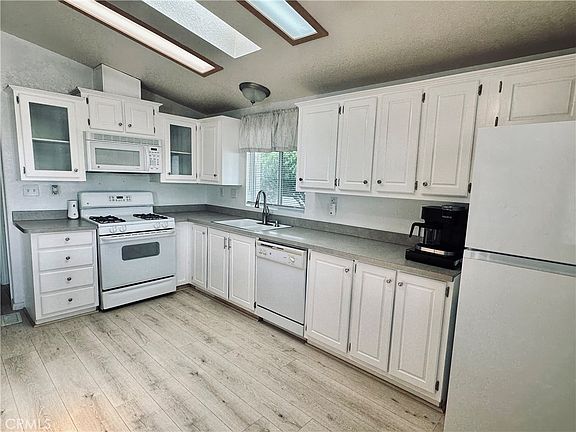 MOTIVATED SELLER, Welcomes you to the GATED, FAMILY FRIENDLY community of Saddleback Estates. Enter into your 2 bedroom, 2 bathroom home through your large private covered porch into the living area. The generously sized kitchen is light and bright with a skylight and ceiling fan. Down the hall you will find a laundry area with the added convenience of a side exit to the covered carport. Convenient for bringing in your groceries. This home offers a large primary suite with 1 additional bedroom and bathroom with high ceilings and new carpeting throughout. Great for 1st time buyers and those looking to enjoy beautifully updated amenities, which includes a sparkling pool & spa, BBQ area with basketball courts and a newly updated playground. A clubhouse with kitchen facilities is available for your special celebrations. Buyer will require park approval.