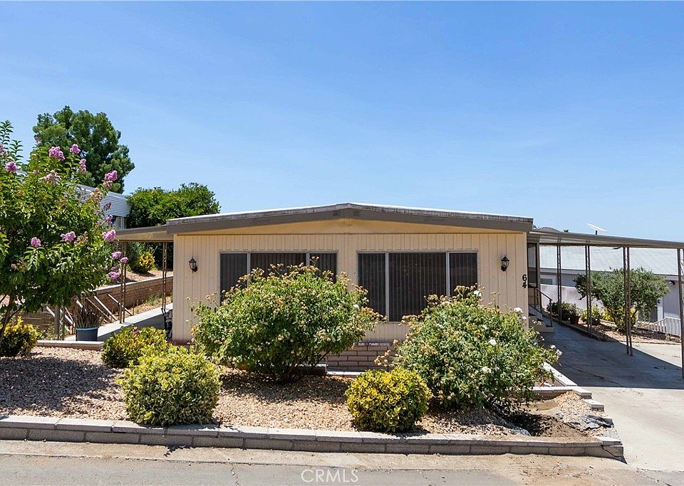Welcome to Saddleback Mobile Home Estates Park! Beautiful doublewide mobile home with expansive view and one of the best locations in Saddleback Estates, an ALL AGE gated and family friendly mobile home park. This mobile home features added parking with extra-long driveway. The Clubhouse is just around the corner. Large front covered porch and level front entry with a Large Screened-in Porch. 3 beds, 2 bath meticulously maintained home has it all. Tons of natural light, a spacious floor plan featuring a separate den off the kitchen, laundry room and large primary bedroom with an en-suite bathroom. Amenities offered include a recently renovated gated pool and spa, a recently added playground, billiard room, basketball court, a library, laundry room, horseshoes, a Banquet for family events, and RV/ boat storage. The park is located within walking distance of schools, shopping centers, grocery stores, DMV, banks and for commuters' quick access to Domenigoni Pkwy.