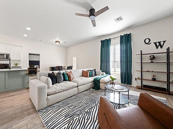 Step inside to an open-concept layout featuring a premium stainless steel appliance suite. Refrigerator with ice/water dispenser that is staying, smooth-top range, built-in microwave, and dishwasher and quartz countertops. The kitchen also boasts a large lighted pantry and a double sink with a high-end pull-down faucet. The spacious living and dining areas are perfect for entertaining or relaxing.