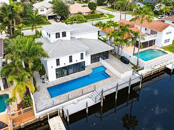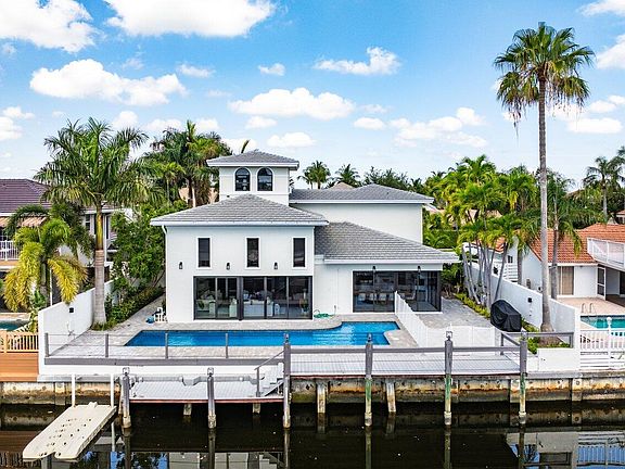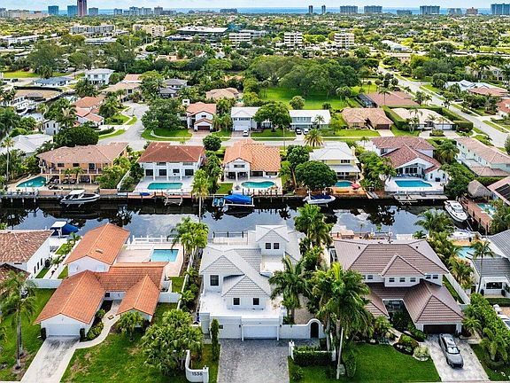 Enjoy Luxury Waterfront living in this Mediterranean Estate home in East Boca Raton. This extraordinary fully renovated 4/4 home features a new roof & impact windows & doors. Walk thru the lushly landscaped private courtyard and as you enter the home you will immediately notice the natural light streaming in, the 2 story living room ceiling & the expansive water views. This home is made for entertaining with a fantastic new wet bar complete w/a built in wine cooler & ice maker & the all white eat in kitchen w/ gorgeous quartz counter tops and bar & new highly upgraded Monogram kitchen appliances. As you step out to the oversized pool & patio you can imagine using your summer kitchen under the pergola & docking your boat at your own private 70 ft. dock. Your luxurious main floor master bedroom is complete with 2 huge walk in closets & an amazing spacious master bath. Upstairs you will find a loft family room, office area and a split bedroom design each with their own bath....finally a bright and sunny surprise addition on the 3rd floor to make your own. The entire home is surrounded by a privacy wall beginning with your front courtyard with pavered walkways on both sides of the home leading to the pool and patio.