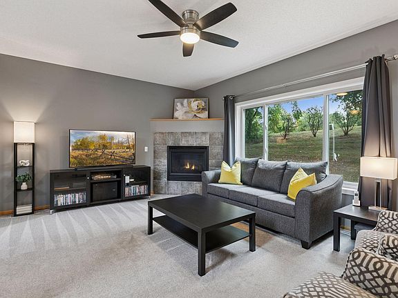 Thoughtfully updated and impeccably maintained, this Woodstone townhome offers a rare 3-car garage and move-in ready living. Enjoy new HVAC, Renewal by Andersen windows, refreshed bathrooms, updated millwork, and fresh paint. The kitchen with island opens to the dining area and great room with fireplace. Main floor laundry with walk-in closet adds ease. The primary suite features two closets—one with flexible use for an office, nursery, or potential fourth bedroom. The unfinished lower level expands possibilities with a bath rough-in and egress window for another bedroom. All this in a prime Eagan location near schools, trails, shopping, and highways. Don’t miss it!