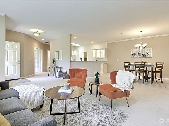 Welcome to this charming 3bed/2bath, 1,524sqft. home offering single-level living ready for your personal touch. This home features a spacious living room, dining room, and kitchen all flowing seamless into one another. White doors and trim throughout. One bedroom conveniently connects to hall bathroom, while primary bedroom features a walk-in closet and ensuite bathroom with newly installed (2022) "Kohler Walk-In Bath". Step outside from the primary bedroom to enjoy the patio space, perfect for gardening & savoring morning coffee. A 2-car garage with a new water heater (2022). HOA maintains exteriors & landscaping. HOA installed new roof recently. Close proximity to all downtown DuPont has to offer.