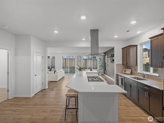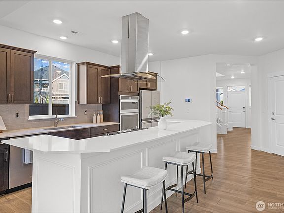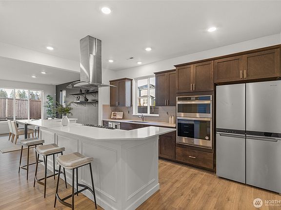 Discover modern living near Tehaleh’s scenic trails, parks, and vibrant Bonney Lake amenities. This corner-lot home offers an open main floor with custom wall molding, upgraded lighting, and a stylish kitchen with a detailed island. Enjoy a spacious layout with a bonus room, a bright primary suite featuring two walk-in closets and upgraded shower fixtures, new stair carpet, plus four additional bedrooms. Outside, the expanded yard and added fencing create rare usable space, complemented by a 3-car garage and a 2021 roof.