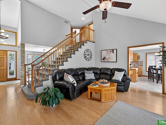 Welcome to Diamond Head! This stunning 1.5-story home greets you with a dramatic two-story entry and living room, accented by bamboo flooring that flows throughout the main living area. The spacious main-floor primary suite is designed for comfort, featuring double sinks, a walk-in shower, and a giant tub. The updated kitchen offers solid-surface countertops, abundant cabinetry, and plenty of space for cooking and entertaining. Upstairs, you’ll find three additional bedrooms and a full bath, providing room for family, guests, or a home office. The fully finished basement extends your living space with a versatile family room that’s ideal for movie nights, game days, or a home theater setup. Step outside to a beautifully landscaped backyard with a large deck, perfect for gatherings, grilling, or simply enjoying the outdoors. Fence, sprinkler system and a new retaining wall. All of this in a great location, close to schools, shopping, restaurants, and the Dodge expressway.