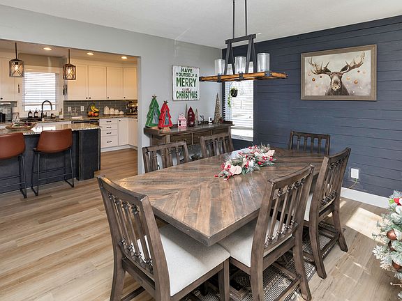 The heart of the home is the stunning kitchen, featuring a large island and stainless steel appliances, perfect for cooking and entertaining. The open-concept layout flows seamlessly into the dining and living areas, creating an ideal space for gatherings.