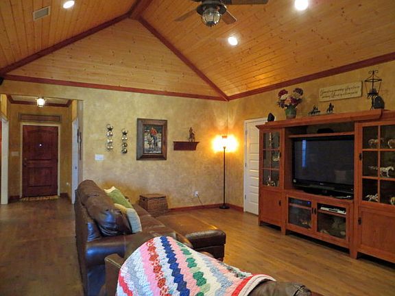 Custom Built 4 Bedrm 2.5 Ba on 22+ ac boasting amenities galore. Warm homey open living concept offers pine plank ceiling & rustic stone fireplace. Spacious island kitchen w/premium appliances, walk-in pantry, breakfast bar & nook, double oven, gas cooktop. Dining area perfect for entertaining. Master suite w/walk-in closet & built in ironing board, double vanities, separate shower & soak tub. Jack & Jill bath between 2 bdrms. 4th bdrm possible home office. Large den/game room perfect for any family. Huge laundry room w/lots of storage. Fabulous view of property from covered patio. Pipe fence corrals, 5 stall horse barn includes wash rack, tack & feed room. Competition lighted roping arena. Additional workshop & storage building.Or can be purchased at $349,000 with only 10.70 acres