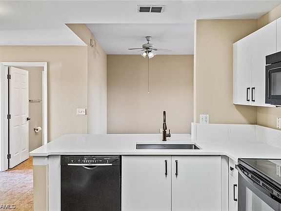 1st Floor condo with tile throughout the main living area and New carpet in the bedrooms. Freshly painted on the interior, with New Quartz countertop tops with white cabinets in the kitchen & bathrooms. Newer Stackable washer and dryer. A/C and water heater were replaced in 2021 . Equipped with Hurricane panels for storm protection along with fire sprinklers for your safety. The association allows 12 leases per year with 30 days minimum giving you flexibility on useage. Whether this is your vacation home, investment property or year-round residence, you 'll appreciate the move-in condition and recent upgrades. Close proximity to shopping , restaurants, and just a short drive to the Gulf beaches on Sanibel Island and Fort Myers Beach. Maintenance fees of $390 per month include insurance on the building, landscaping, management, maintenance of the amenities ( pool, fitness, spa) streets and security gate, and reserves.