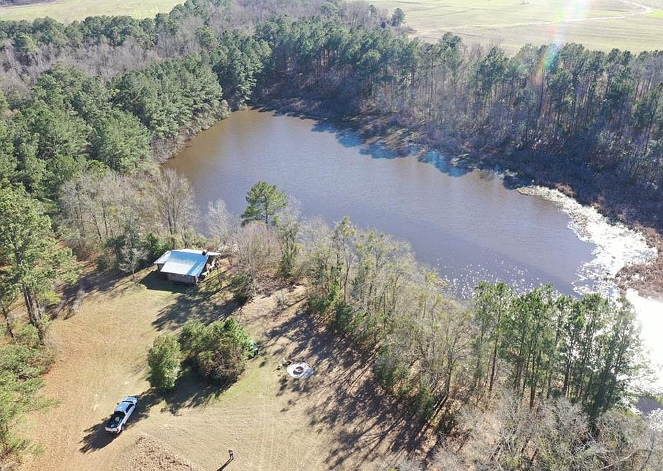 110 Surveyed Acres of Rolling Pine Forest with two ponds and a very solid, storied, 1BR(2 Beds) Log Cabin with Loft (2 Beds), Screened Porch overlooking the pond, and a fishing dock. Check out the 12" heart pine floors! Look at the stone work in the fire place! This property feels good from the moment you roll in from Harmony Road. A winding road forms a path through a mature pine forest of 20" loblolly pines and some longleaf scattered around for good measure. Wildlife sign is everywhere on this property. The back pond has it's own well and the front pond is fed by a creek. Excellent trail system throughout the property. Good Timber Value. Large open yard around the cabin with Fire Pit, grape arbor, and room for a large garden or fruit trees. The cabin is well buffered from the road and very private and secure. The outdoor opportunities on this tract are endless. Fishing! (Feed them off the dock!) Hunting....just look at the rubs on the trees from bucks on the property! Duck, Turkey...this property has it all. Best Viewed with an ATV. Easy to Walk.