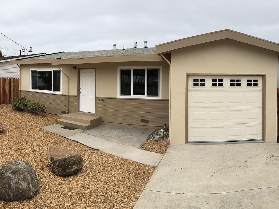 This is a great three bedroom one and a half bath house with new interior and exterior paint, new windows, blinds and kitchen appliances. Hardwood floors in living room, hallway and bedrooms, tile in the bathrooms and kitchen. Washer & dryer hookups, one car garage, fenced in backyard. Sorry no pets.