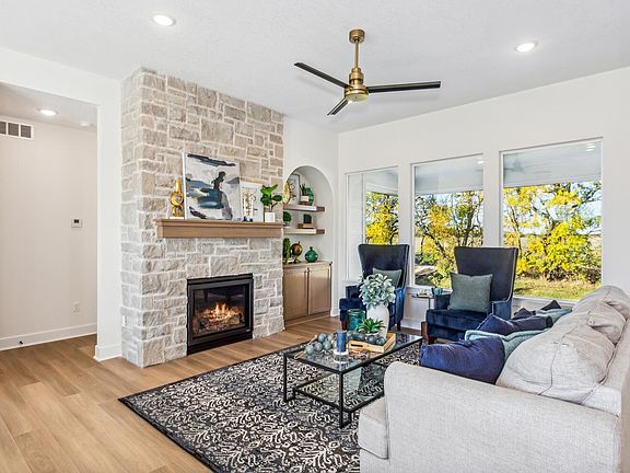 Step into luxury living with this exquisite, brand-new 6-bedroom home crafted by TW Custom Homes. Beyond the front porch through the custom iron door entrance awaits an inviting space bathed in natural light and framed by serene, wooded surroundings. The heart of the home, the kitchen, is a culinary masterpiece boasting top-of-the-line features including a gas range, custom range hood, and cabinetry, complemented by designer tile and a generously sized island. A walk-in pantry adds both convenience and functionality to this gourmet space. Designed for optimal privacy and relaxation, the main floor embraces a split bedroom floor plan, ensuring the primary suite remains a tranquil retreat. Pamper yourself in the spa-like bath complete with a luxurious tile shower, soaker tub, dual vanities, and a spacious walk-in closet. Adjacent to the kitchen, two secondary bedrooms tucked away in a private hall offer versatility and comfort. A custom drop zone, well-appointed hall bath, and thoughtfully planned laundry room enhance the home's practicality and organization. The lower level presents an entertainer's paradise with a fully finished basement featuring a wet bar and seamless access to the mid-level walkout onto the expansive covered patio. With a total of 6 bedrooms, this home offers abundant space for family living and guest accommodations. The basement further boasts three additional secondary bedrooms, one of which is oversized and ideal for a gym, playroom, or bonus space, along with a third full bath. Nestled in the esteemed Shadow Rock community, residents enjoy access to award-winning Andover schools, a neighborhood pool, playground, and sport court. Nearby, the Redbud Trail beckons outdoor enthusiasts with miles of biking and hiking trails. Situated on the last available lot in Shadow Rock on the tree row, this home offers the ultimate in luxury living. Professional landscaping, an irrigation well, and lush sod ensure this new home is move-in ready, promising a lifestyle of unparalleled comfort and convenience.