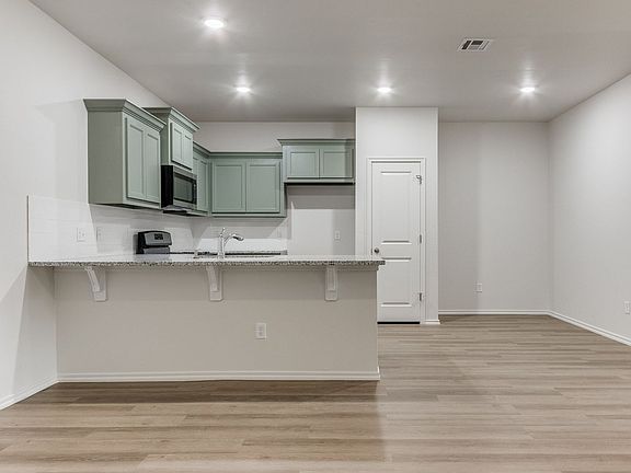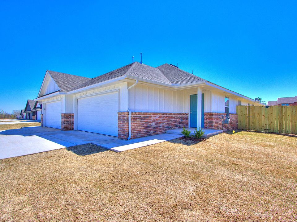 Three Bedroom Duplex In El Reno. With 3 bedrooms, 2 bathrooms and a 2 car garage, it has all the space you need. Huge master suite with large closets. Kitchen is equipped with Microwave, Stove and Dishwasher. * Fridge Not Included * Has seperate pantry area with plenty of storage. Kitchen has plenty of cabinets. The kitchen area and bar opens into the living room for the open floor plan. Full size washer and dryer connections located off the hall. Backdoor is through the laundry room. This duplex will NOT last long. We have THREE Different Plans to chose from. One with Black cabinets, green cabinets (Gold Fixtures) and the third with grey cabinets. See other address on our website for details. Available for self show. Photos might vary from actual unit!