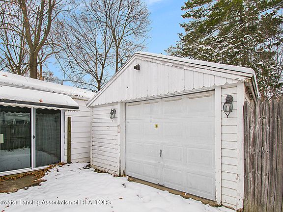 Charming 3-bedroom, 1.5-bath ranch-style home on Lansing's desirable Westside, complete with a hard-to-find 1-car detached garage. The low-maintenance exterior offers great curb appeal with crisp white siding accented by dark shutters. Step inside to a spacious living room filled with natural light from surrounding windows. The kitchen features warm cherry cabinets and a convenient space for a washer and dryer. Down the hall, you'll find three comfortable bedrooms and 1.5 baths. One bedroom includes a sliding glass door that opens to a private backyard—perfect for a primary suite, home office, or versatile flex space. Bonus features include a detached 1-car garage, newer water heater and furnace, white vinyl windows, and a fenced-in backyard.