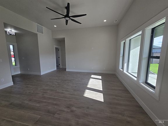 Get ready to move into this stunning one-level home. 4 bedrooms and 2 bathrooms, offering 1,924 sq. ft. The expansive kitchen, dining, and living areas create the perfect setting for gatherings. The kitchen is equipped with white cabinetry, quartz countertops with soft-close drawers, a central island, and a spacious walk-in pantry, complete with a gas range, microwave, and dishwasher. The generous primary suite boasts a walk-in shower, and an bright extra large walk-in closet. Enjoy the luxury of LVP flooring throughout the main living areas. White stucco exterior with black framed windows and a white brick and hardy board accent on the front elevation. The covered patio that overlooks a fully fenced and beautifully landscaped backyard. Includes a fully insulated attached 3-car garage plus adjoining 37x15.5 RV garage/shop with 15 ft. ceilings. There is also an additional outside RV parking area. This home will be ready for you to enjoy from day one!