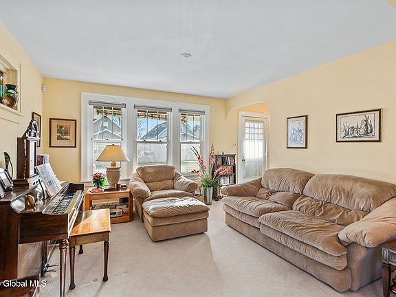 OFFER DEADLINE SUNDAY 3/30 6PM -- Come fall in love with this meticulously maintained charmer in the heart of the Electric City. This bungalow boasts three bedrooms, a full bathroom, living room, formal dining room, and eat-in kitchen all on the first floor. Extra room off the kitchen could be used as a den, office, or extra bedroom. Hardwood floors underneath carpeting and replacement windows throughout. Enjoy the upcoming summer nights on the spacious front porch. Central a/c. Double lot provides ample space and is perfect for outdoor activities. Plenty of off-street parking with long driveway which leads to 4 garage spaces. Just blocks from major highways and all that the Capital District has to offer! Seller is a New York State Licensed Real Estate Broker.