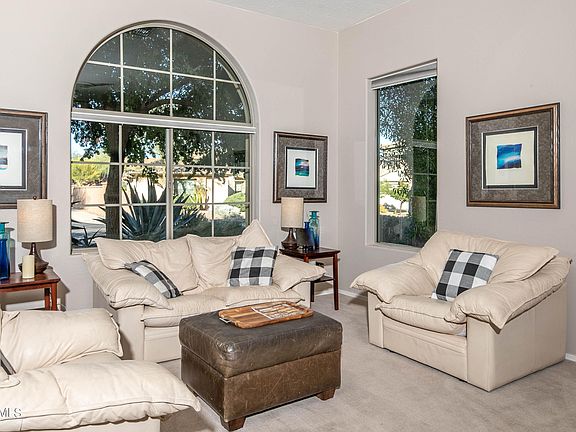 Furnished vacation rental! Looking down #11 hole on Ironwood Course from behind the tee boxes, this golf course lot offers distant mountain views, elevated golf views and lake views. This 3bedroom, den, 2 bath single level home has formal living and dining area, family room that is open to kitchen and a large media nook. Updated eat-in kitchen has granite counters, stainless appliances including gas range, extended bank of upper and lower cabinets, pantry and island with breakfast bar. Refrigerator, washer and dryer included. Backyard covered patio is full length with view fencing. Tile in all the right places. Come relax and enjoy the views! $4,350/mon November-May. $2,750/mon June- October.