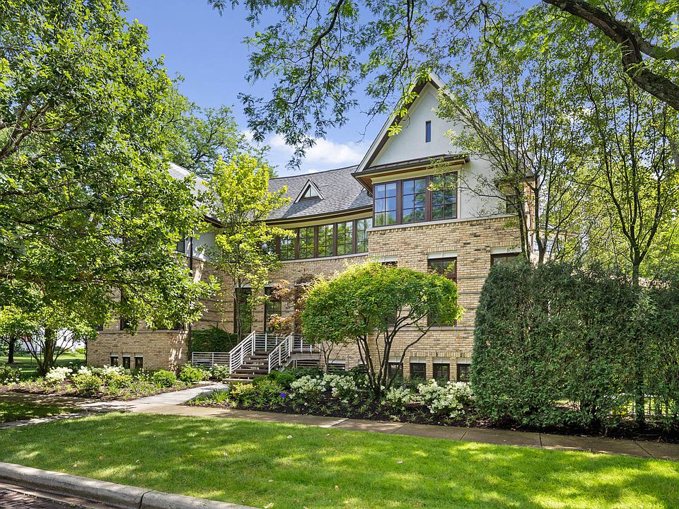 Extraordinary Architecture, Beauty, Sophistication & Location! Sited on one of McKenzie Square's most beautiful botanical-lined blocks, this extraordinary Contemporary home will leave you spellbound! Built in 2006 by renowned local architects Morgante Wilson, this home was designed w/ every detail in mind, truly a multi-sensory delight! From the moment you enter, you are awed by the architectural detail. Curved walls, custom 10- 12 foot arched ceilings, custom windows, steel constructed staircase & custom molding. The curved walled foyer offers built-in shelving to display art, personal collections or family mementos. Truly unique is the custom Hemlock wood flooring, cut 2x4's to reflect the brick streets of Wilmette, that runs from the foyer through the kitchen & family rooms! The formal living room is the perfect space for entertaining, graced w/ a gorgeous concrete gas fireplace & stunning custom windows. The dining room is equally impressive w/ a dramatic gallery wall w/ transom windows, perfect for displaying large artwork. The stunning Italian chandelier creates a sophisticated ambiance while dining. The gourmet kitchen was updated in 2023 & features newly refinished cabinets & center island. While chefs will enjoy the Sub Zero refrigerator/ freezer, additional refrigerator & freezer drawers, Wolf double oven w/ top convection, Wolf range w/ 4 burners plus griddle & Bosch dishwasher, guests or family will settle around the custom banquette that overlooks the rear yard & seats 6 comfortably! The adjoining family room w/ coffered ceiling & both recessed & pendant lighting is where everyone gathers. Not only does the family room receive abundant light from the surrounding custom windows, there are additional transom windows that extend from the family room & circle the kitchen. Perfect for year round barbecuing, the kitchen opens to the rear double tiered bluestone patio. With the surrounding beauty of the newly landscaped backyard, guests won't want to leave! The first floor also enjoys a convenient office w/ custom marble top built-ins, built-in desk & shelving. An awesome stay-at-home workplace! The mudroom not only has 5 built-in cubbies, but offers bench seating, built-in shelving, cabinets & coat closet! Right outside is a gravel gated dog run, so handy! A gorgeous steel constructed staircase leads to the second floor where you'll find a striking curved hallway & four bedrooms, each w/ its own unique architectural charm & style; high ceilings, arched walls, incredible built-ins & automatic closet lighting. Bedroom number 2 even has a reading loft with built-in shelving! The luxurious primary suite enjoys cathedral ceilings, 12 foot ceilings, gorgeous custom lighting & his & her custom closets. The en-suite spa bath w/ soaking tub, walk-in lit shower, double vanities, sound system & heated floors is the perfect retreat! The 2nd floor also offers a convenient laundry room w/ tons of storage & shelving. Upstairs, you'll enjoy the incredible 3rd floor bonus area, currently being used as a teenage family room that enjoys the most beautiful covered Zen balcony, skylights included! A perfect getaway! Whether you are hanging out in the winter or entertaining in the summer, the lower level w/ soaring 12 foot ceilings, sizable brick landscaped window wells that allow abundant light, impressive media/rec room w/ projector & screen, game area, project room & exercise room w/ ballet bar offers hours of fun! There is also a spacious guest bedroom w/ full bath & storage room w/ built-in shelving. Exceptional newly landscaped grounds can be enjoyed from the double bluestone patio. The fenced play yard is perfect for children of all ages! You will never see a more beautiful oversized 2+ garage w/ adjoining parking/basketball pad! This home truly exemplifies quality, elegance & attention to detail! The walk-to school, town, train & library location is one of Wilmette's most desirable, offering a community lifestyle desired by all!