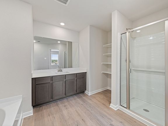 The two-story Colorado floor plan offers three bedrooms, two and a half bathrooms and a well-designed layout. Its open concept integrates living spaces seamlessly, fostering connectivity and flow from the welcoming foyer to the expansive living room and open dining area. The upgraded, chef-ready kitchen features stainless steel, energy-efficient appliances, granite countertops and designer wood cabinetry, making cooking and cleaning a breeze. The peaceful master retreat includes a spacious bedroom, spa-like bathroom with a glass walk-in shower and garden tub, and a huge walk-in closet for optimal storage and organization. The Colorado plan ensures both comfort and functionality for everyday living.